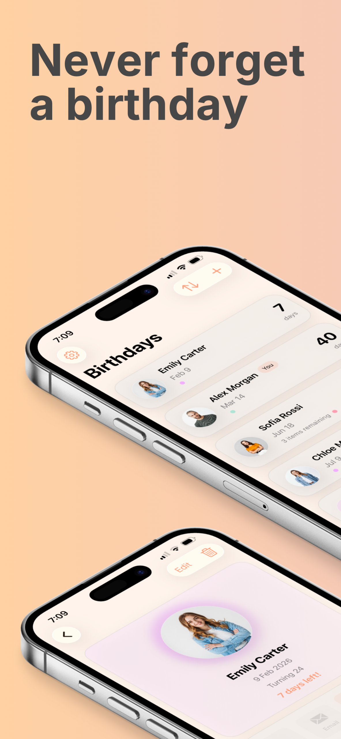 Track birthdays, never miss a celebration, and plan thoughtful gifts - all in one beautiful app.